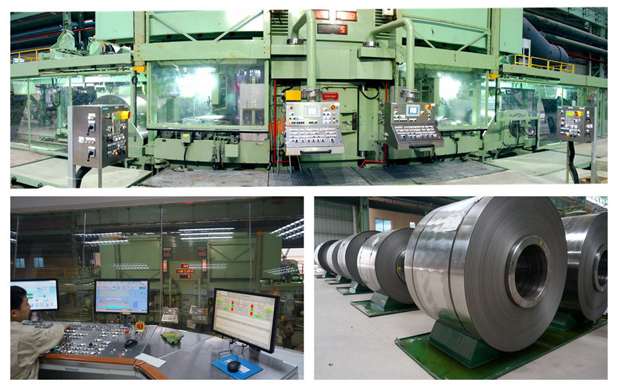 五機(jī)架冷連軋機(jī)組由西門(mén)子普銳特公司設(shè)計(jì)和制造,國(guó)內(nèi)設(shè)備由中國(guó)一重制造,電氣設(shè)備由西門(mén)子提供,由中國(guó)十九冶建設(shè)和安裝,采用全連續(xù)無(wú)頭軋制工藝,設(shè)計(jì)年產(chǎn)能70萬(wàn)噸,速度400米/分鐘,入口配置的西門(mén)子激光焊機(jī)可帶焊縫直接軋制;可實(shí)現(xiàn)在線換輥;配備自動(dòng)厚度控制系統(tǒng)(AGC)、板型控制系統(tǒng)(AFC)和自動(dòng)糾偏裝置(CPC),保證鋼帶的厚度精度、板形質(zhì)量以及運(yùn)行協(xié)調(diào)穩(wěn)定。五連軋高產(chǎn)高效、節(jié)能環(huán)保,是目前世界上最先進(jìn)、最具競(jìng)爭(zhēng)力的全連續(xù)式不銹鋼冷軋生產(chǎn)線。