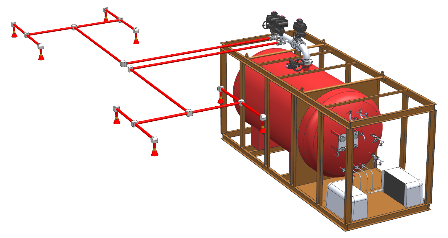 QMED系列低壓二氧化碳裝置具有動作可靠、安全,操作方便,便于安裝、復(fù)位、維護保養(yǎng)等優(yōu)點。系統(tǒng)可實現(xiàn)自動監(jiān)控,可持續(xù)顯示壓力、液位,并具有高低壓力、高低液位自動報警,制冷機自動啟閉的功能,而且可根據(jù)保護區(qū)大小,編程控制主閥和選擇閥的開啟時間,可靠地達到滅火目的。